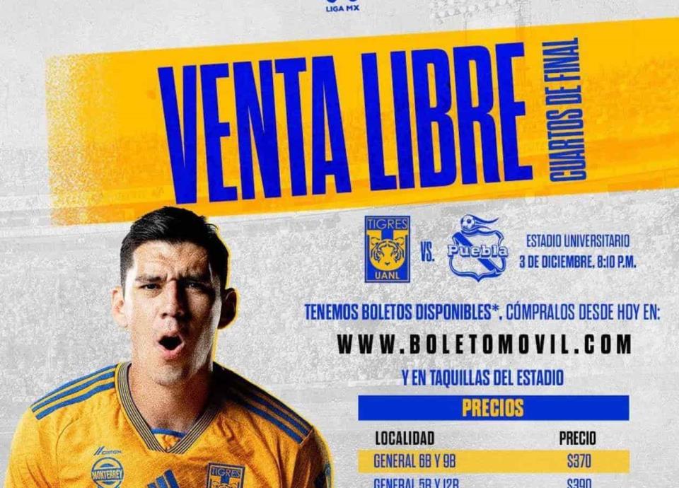 Los Tigres iniciaron el viernes por la tarde con la venta libre de borltos para los cuartos de final de vuelta que tendrán frente al Puebla durante el próximo domingo.