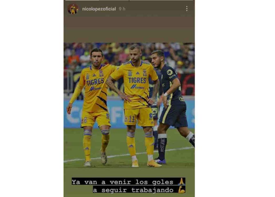 "Ya caerán los goles, a seguir trabajando", escribió López en una historia que compartió en Instagram y en ella aparecía una foto grupal de todo el equipo de Tigres.