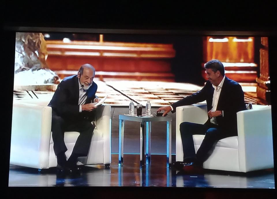 Elías Ayub le había hecho una pregunta a Slim Helú, pero no estaba poniendo atención a la respuesta sino que se puso a leer una hoja con preguntas de los becarios de Fundación Telmex.