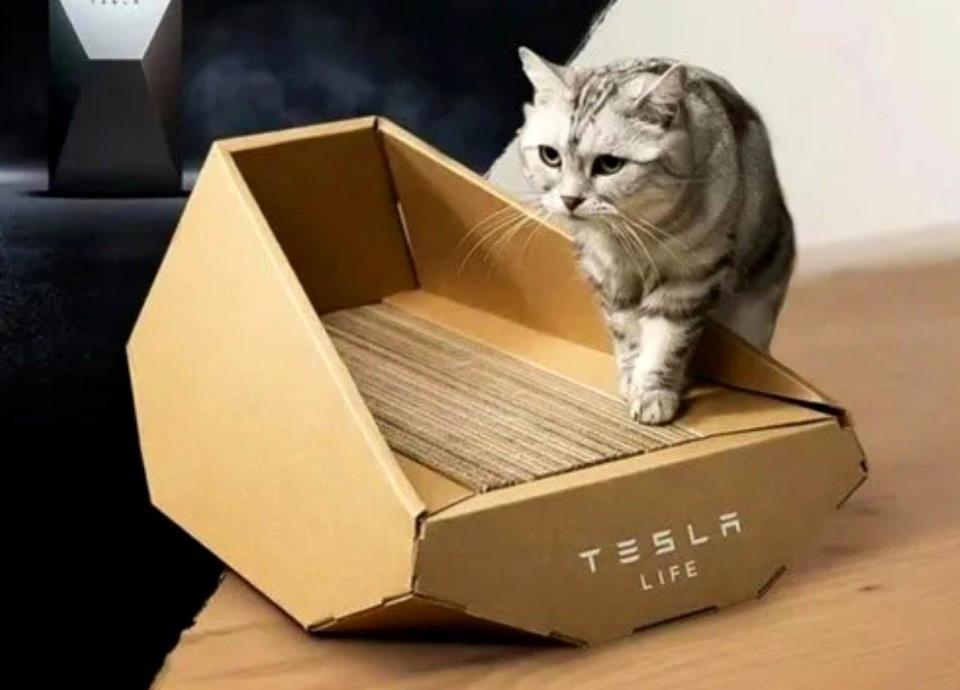 El 'nido de gato corrugado multifuncional cybertruck' se une a otros locos productos de Elon Musk como el 'Teslaquila' y shorts rojos con la palabra S3XY