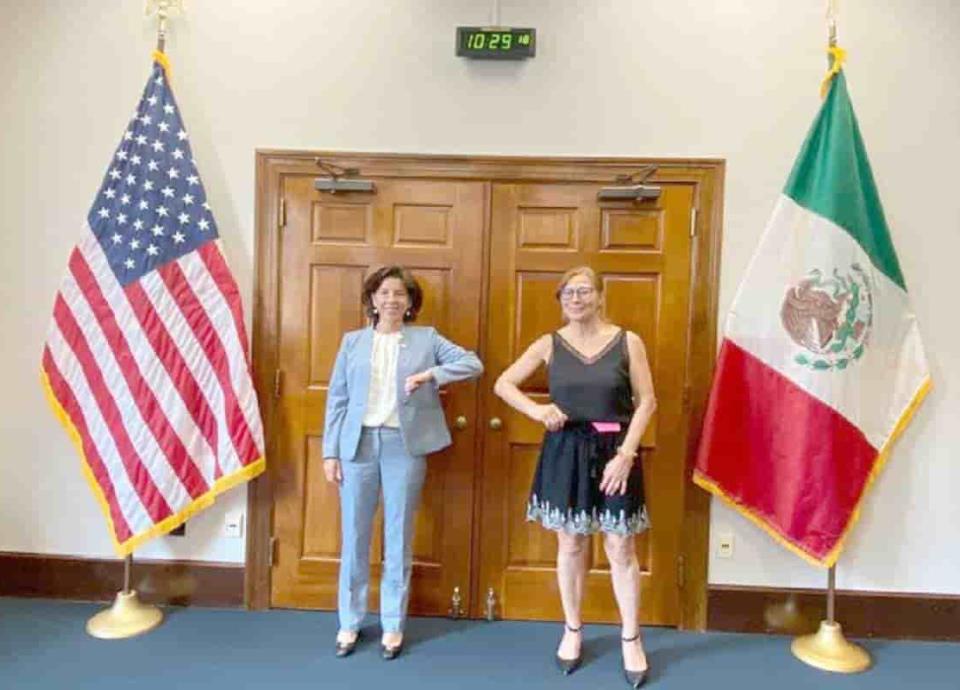 Clouthier, y la secretaria de Co-mercio de Estados Unidos, Gina Raimondo, platicaron sobre los acuerdos que existen para las exportaciones mexicanas de jitomate y azúcar a territorio estadounidense.