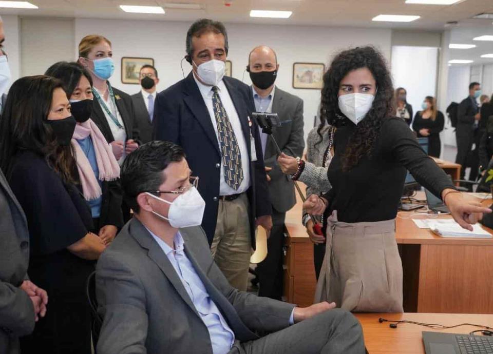 En la visita que realizaron las delegaciones de los socios comerciales de México para conocer los diferentes servicios que brinda este organismo público a los trabajadores y empleadores, estuvo la secretaria del Trabajo y Previsión Social, Luisa María Alcalde, y Tatiana Clouthier, secretaria de Economía.