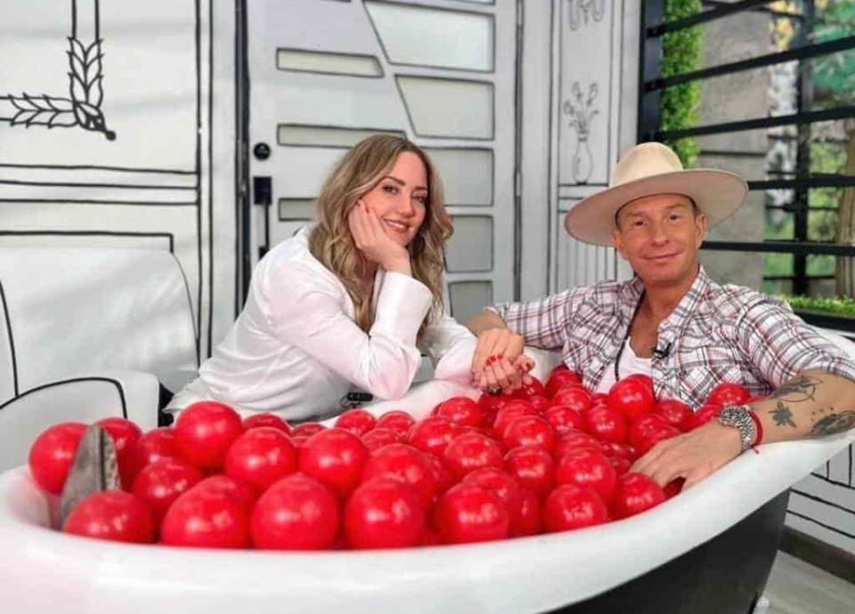 En la sección de "la tina", el cantante apareció entre pelotas color rojo mientras Legarreta estuvo sentada a un lado y haciendo preguntas sobre su pasado; ambos intercambiaron miradas y sonrisas que dieron mucho de qué hablar en las redes, pues la mayoría de los comentarios indicaba que "el amo está en el aire", y que la pareja debería intentarlo de nuevo, pues se nota que aún hay mucho amor entre ellos.