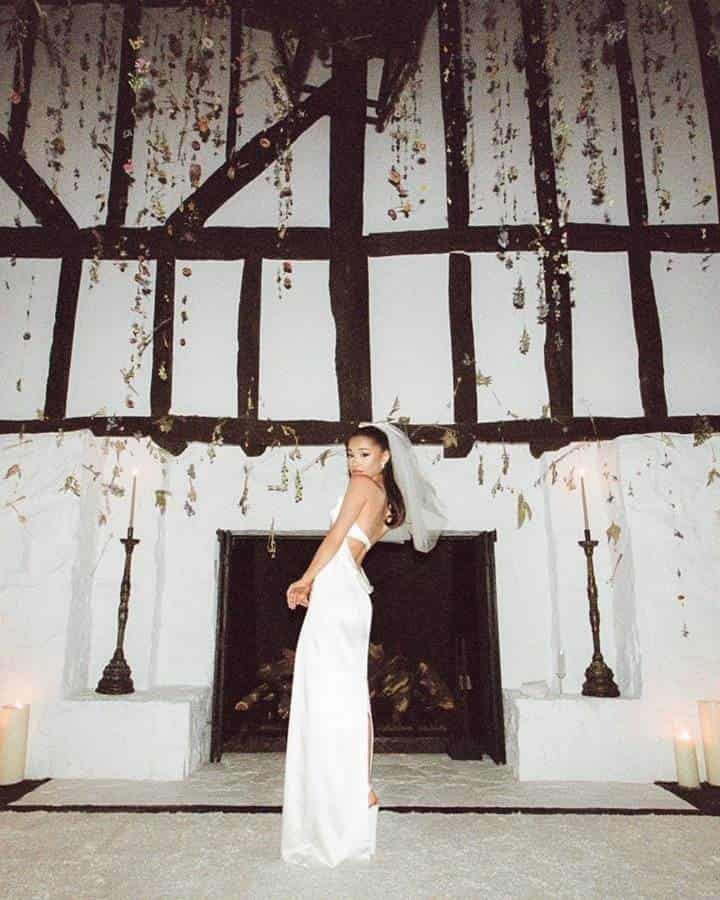 En la segunda publicación, Ariana Grande le mostró a sus seguidores algunos detalles de su vestido de novia, el cual es strapless y tiene una abertura que permite ver la espalda de la cantante. En dichas imágenes se observa que Ariana usó un maquillaje sencillo, que destacó sobre todo sus ojos.