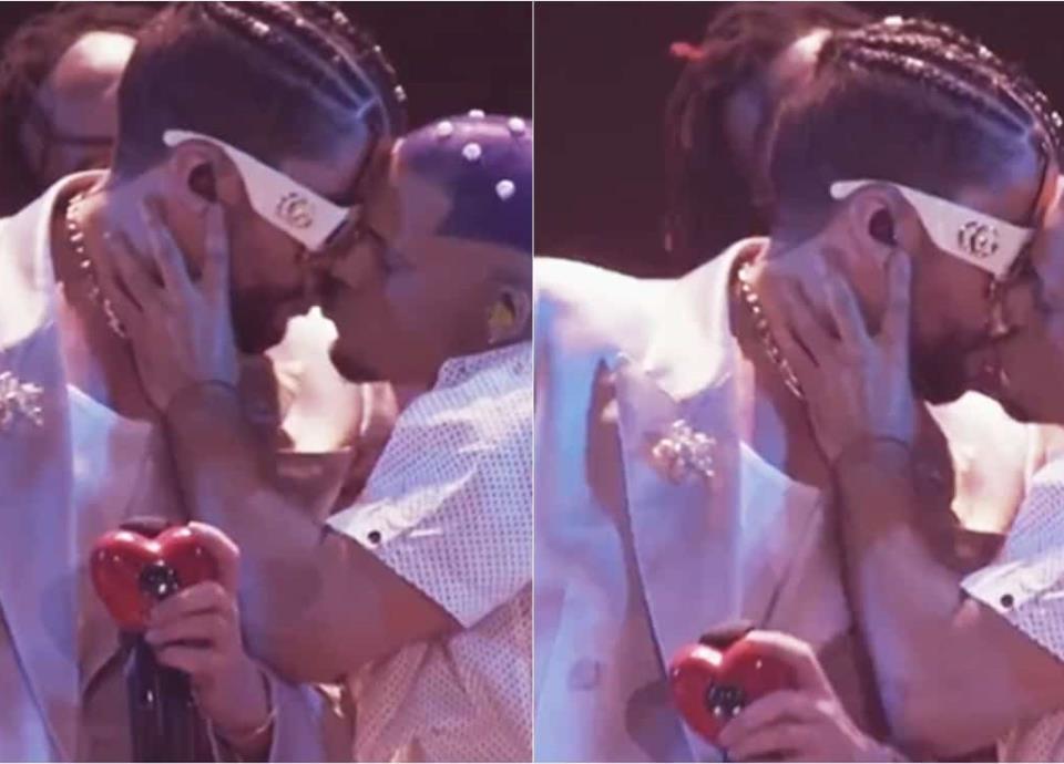 Bad Bunny besa a uno de sus bailarines durante los MTV VMAs