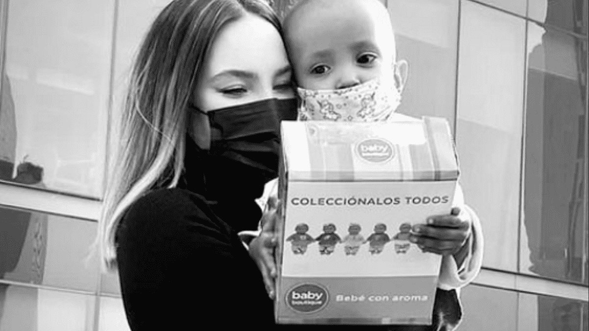 Uno de los momentos más emotivos es cuando la artista, visiblemente emocionada, le entrega el tratamiento y un oso de peluche a un niño en silla de ruedas.