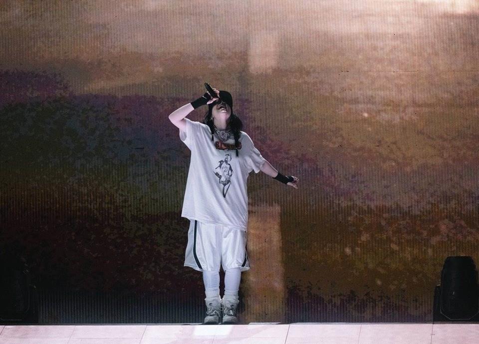 Billie lució por momentos trapera, suelta, desafiante, retadora y provocativa, pero en otros, sensible, concentrada e incluso retraída, todo en función de la canción que interpretaba; imponente cuando descendía por la pantalla que estaba recostada sobre la tarima, y por donde parecía ascender a una pirámide.