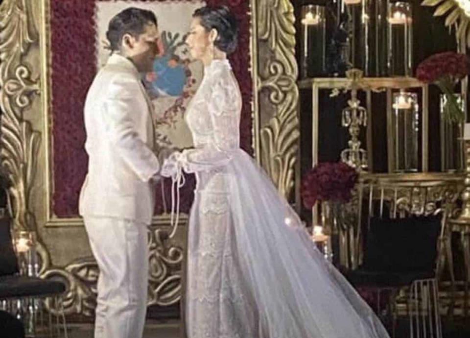 En las postales, que ya le están dando la vuelta al Internet, se puede ver a ambos famosos en la capilla del recinto, vestidos completamente de blanco y tomados de las manos, en lo que puede interpretarse como el intercambio de votos.