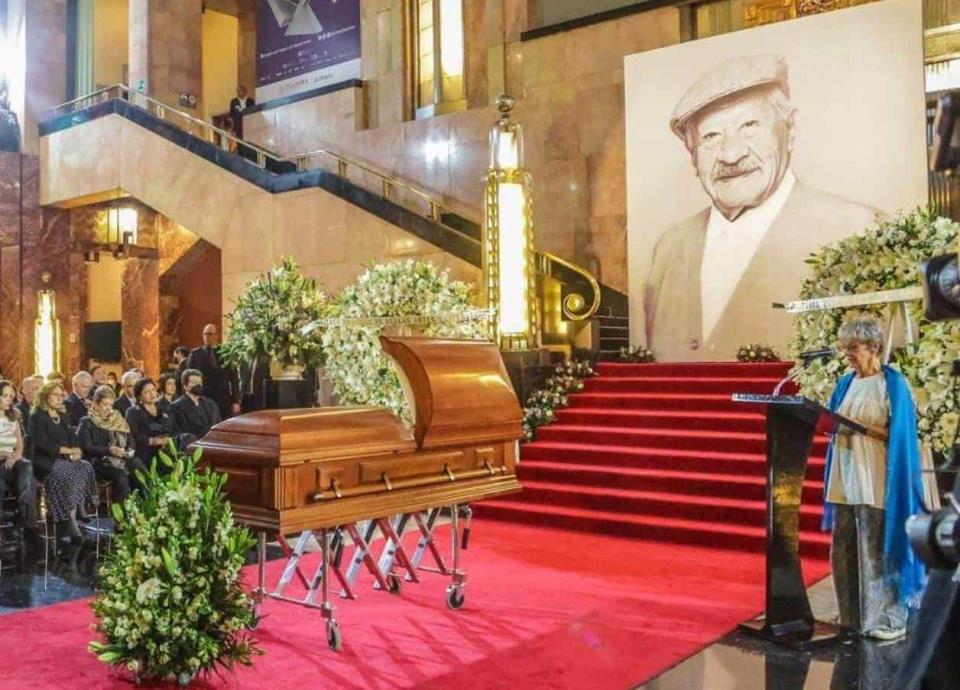 A este tributo con cuerpo presente y con el ataúd abierto acudieron familiares del protagonista de "Macario", como su hijo Juan Ignacio Aranda, quien recibió el cuerpo a las afueras del máximo recinto y en donde el público lanzó una fuerte porra y aplaudió por última vez al histrión.
