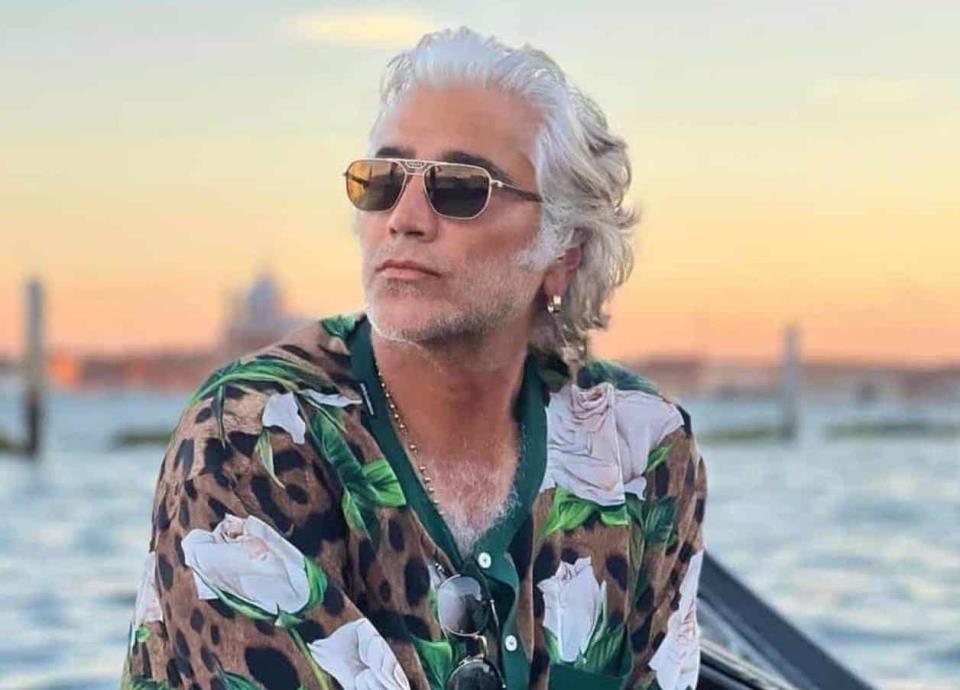En la serie de fotos, el intérprete de “Caballero” aparece posando sobre una góndola con una cabellera blanca, unos shorts de mezclilla y una camisa verde adornada con flores.