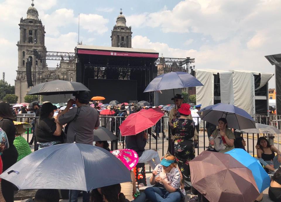 Fans de Rosalía esperan concierto en el Zócalo bajo el sol