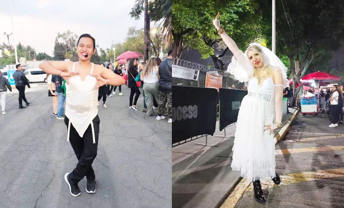 Ellos y ellas visten de novia: con un largo velo blanco y corsé a juego; sin embargo, no van hacia ningún encuentro nupcial, más bien, es el look elegido para el primer concierto de Madonna en la Ciudad de México.