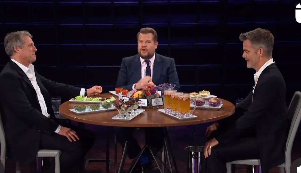 Corden seleccionó un plato de Shepherd's con mayonesa de gusanos para que Grant lo comiera en caso de no querer responder (o no poder hacerlo) a la siguiente pregunta: "Si pudieras eliminar una película de tu página de IMDB, ¿cuál sería?".