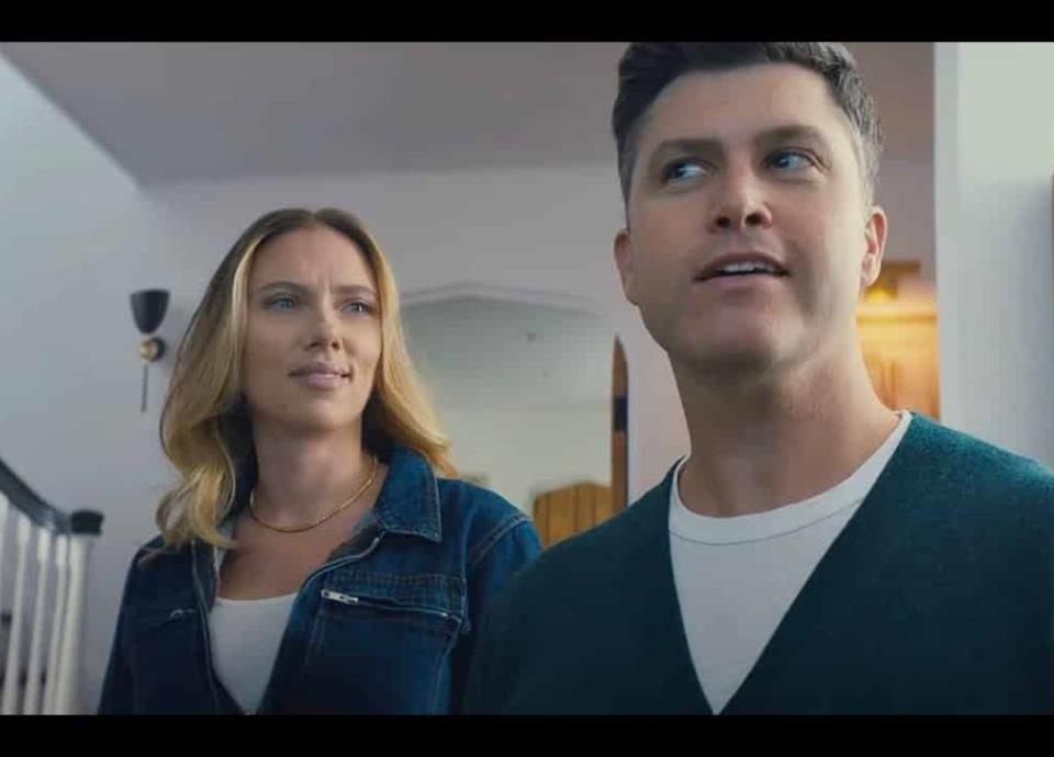 Scarlett Johansson y Colin Jost se reúnen en la pantalla para esquivar un dispositivo de lectura mental de Alexa en un nuevo comercial para el Super Bowl
