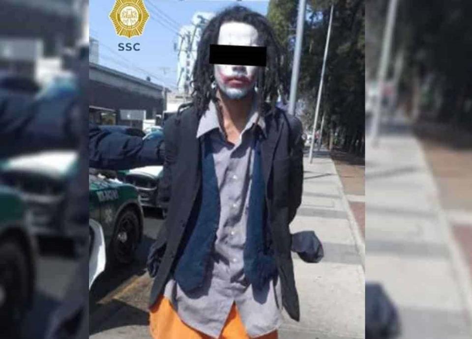 Un hombre vestido de payaso y con un machete, fue detenido por la policía capitalina en calles de la colonia Tlacamaca, alcaldía Gustavo A. Madero, por robar a una persona.