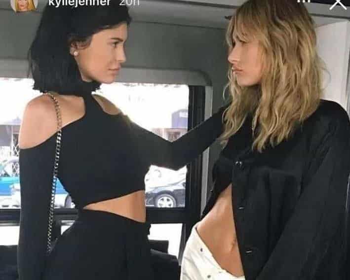 La empresaria, dueña de la marca Kylie Cosmetics, compartió a través de sus historias en Instagram unas fotografías en donde la vemos cuando era muy joven, con algunos 17 o 18 años de edad al lado de Hailey Bieber, la actual esposa del cantante Justin Bieber, y sorprendió al mostrar que todas sus curvas y pronunciados atributos no son del todo naturales.