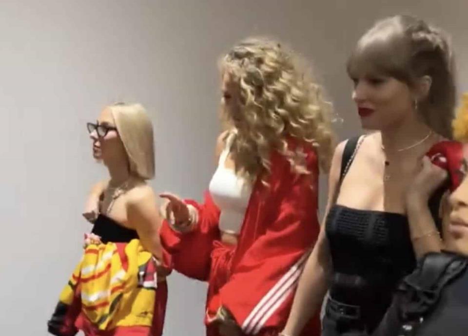 En un video publicado en las redes de la NFL, Taylor aparece junto a la actriz (Blake) y la rapera (Ice), ingresando al estadio.