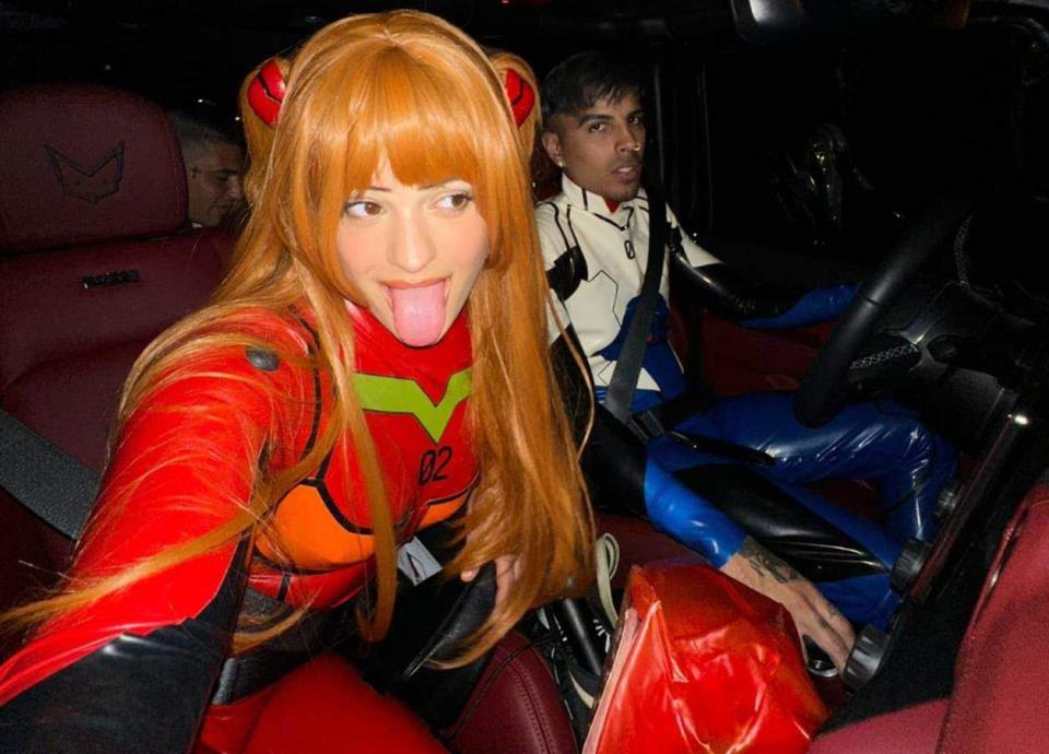 En las instantáneas, se puede apreciar que su novio, el cantante de reggaetón, Rauw Alejandro, está vestido como el protagonista de la animación, Shinji Ikari.