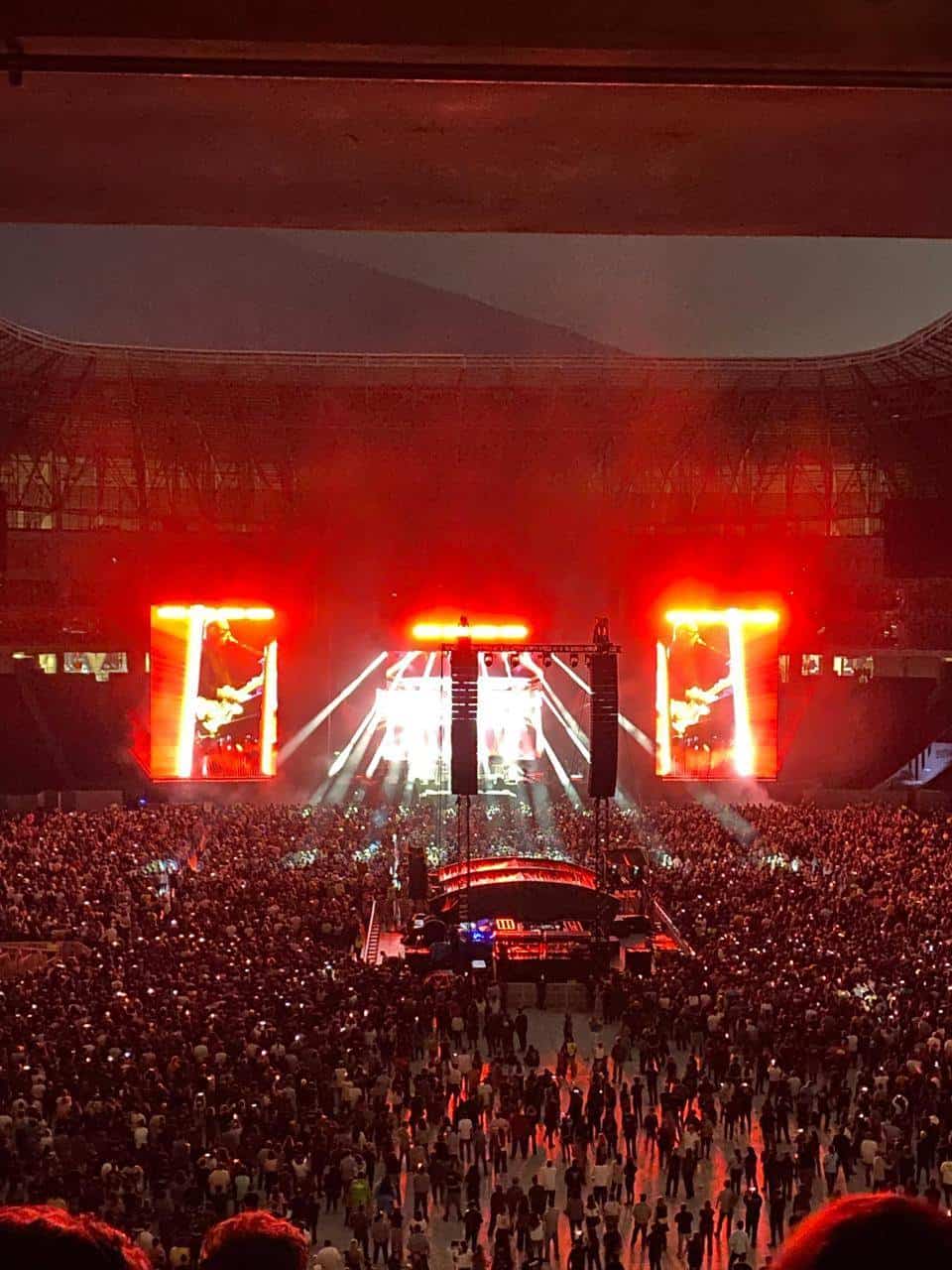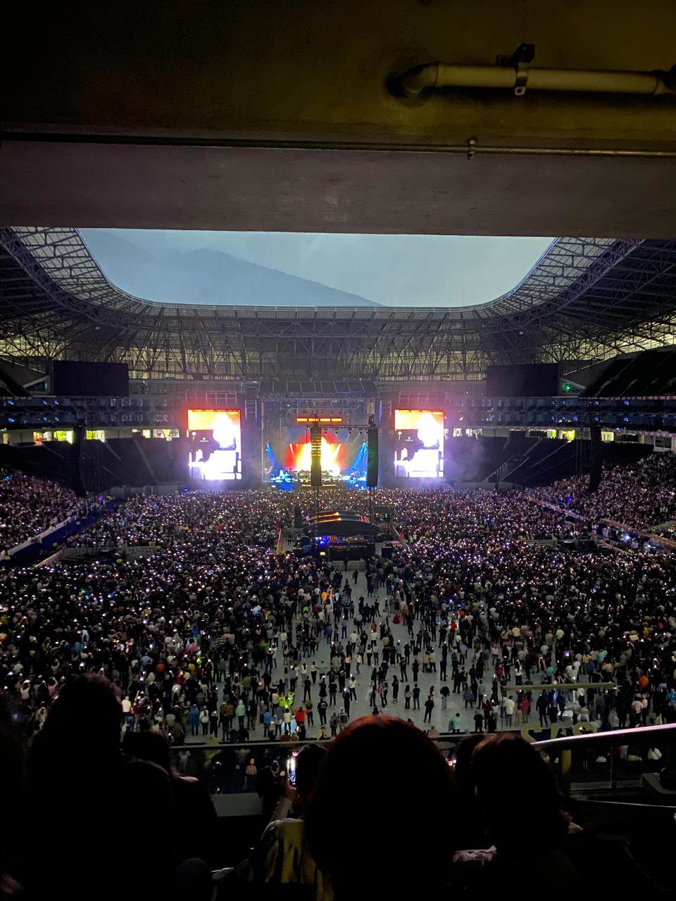 Tras el caos que se vivió para entrar al estadio por una falla en el lector de boletos, finalmente a las 21:46 horas inició el esperado concierto ante cerca de 49 mil personas.