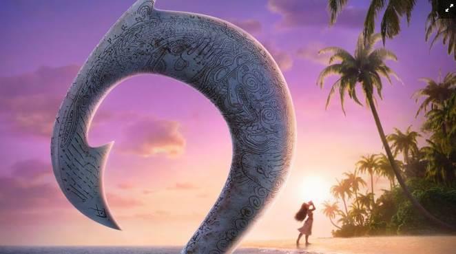 En la imagen, se puede ver a Moana en la playa, con un "2" formado por el anzuelo de Maui y el remo de la protagonista de la cinta animada.