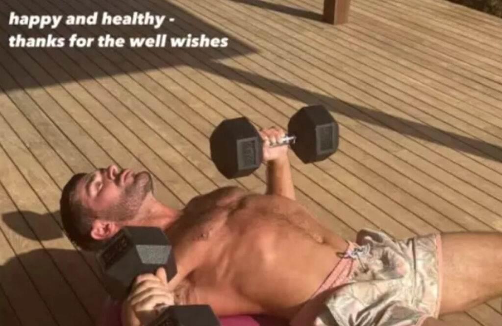 Acompañado de una foto en la que aparece en forma y ejercitándose cerca de la playa, el ex de Vanessa Hudgens escribió: "Feliz y saludable. Gracias por los buenos deseos".