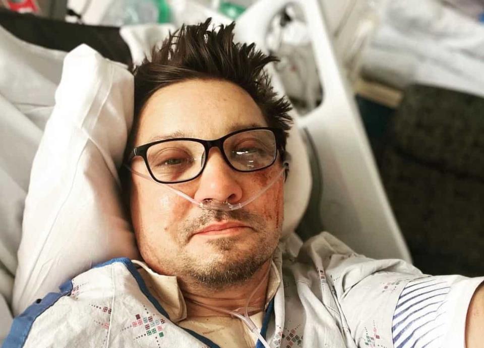 Tras el grave accidente que sufrió, Renner compartió una fotografía desde el hospital.