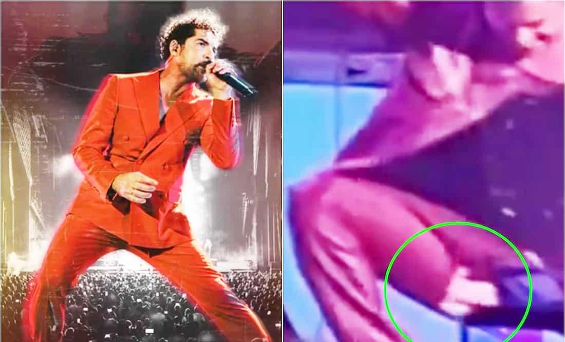 El cantante español David Bisbal sufrió un pequeño accidente con su vestuario durante uno de sus shows.