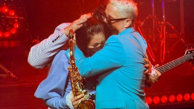 La saxofonista acompañó al español con la pieza “Cuando nadie me ve”, en el Auditorio Nacional.