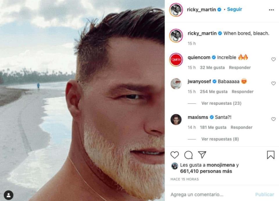 El artista acaba de compartir una selfie en Instagram en la que aparece mostrando su nuevo e impactante look en la playa."Cuando te aburras, tíñete", escribió junto a la imagen en la que presume de su nueva barba rubia que contrasta con su pelo castaño natural.