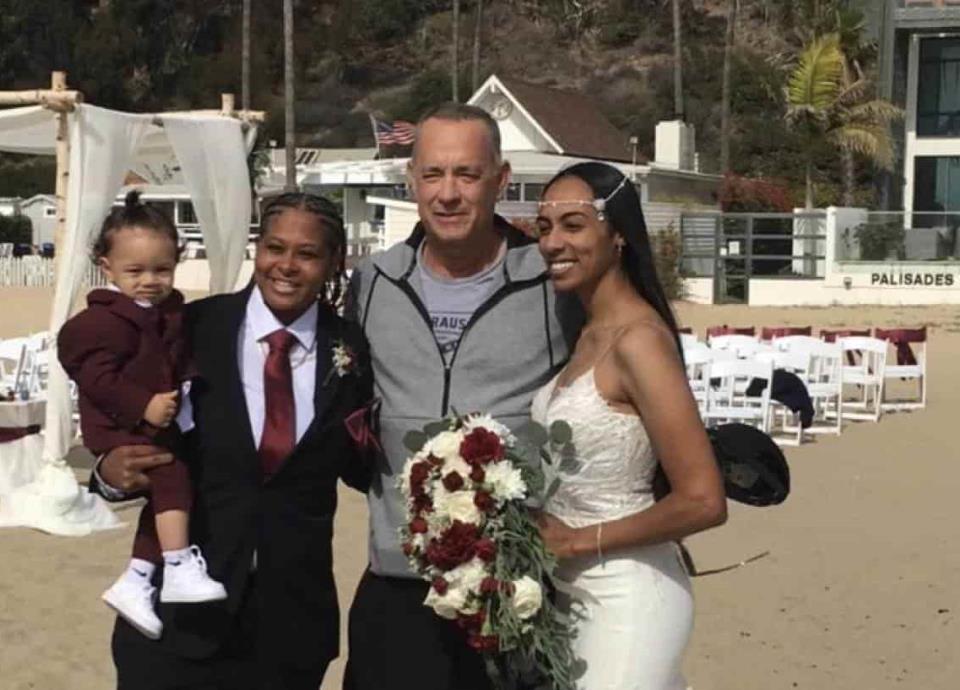 Tom Hanks impactó en redes sociales al aparecer de sorpresa en la boda de Diciembre y Tashia Farriescelebrada en la playa de Santa Mónica este fin de semana.