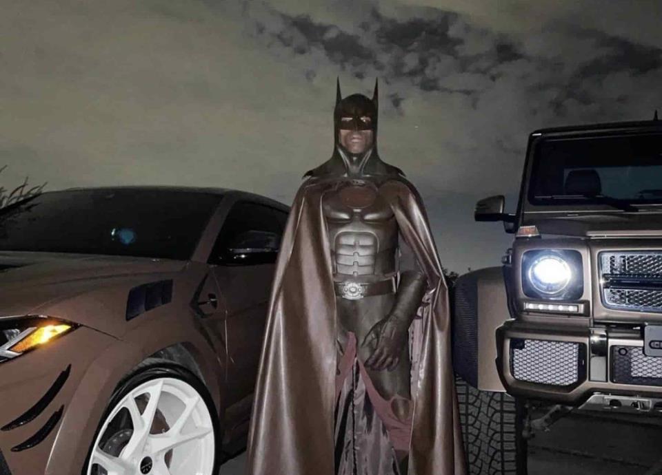 Sin embargo, Travis Scott optó por una versión poco convencional del traje del caballero oscuro en un tono cobre oscuro que, por otra parte, hacía juego con dos de los coches que utilizó como ‘batmóbiles’ en las fotos que compartió en Instagram.