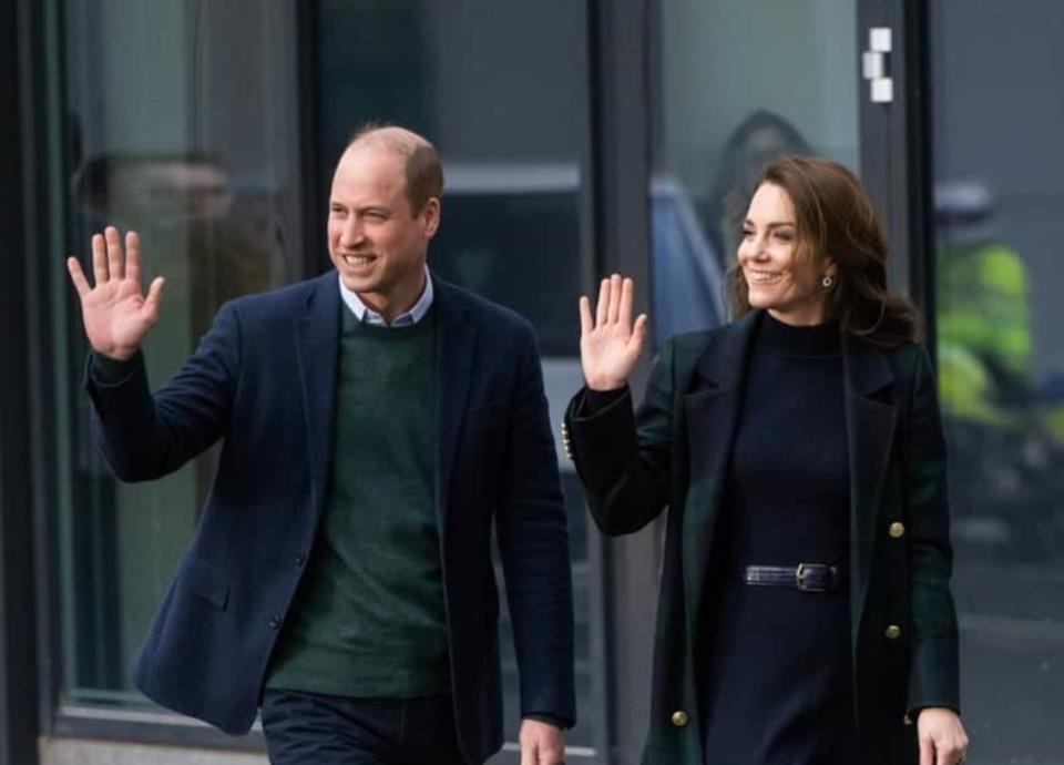 Mientras que el príncipe Guillermo de Gales hizo match con su esposa al llevar una chaqueta y pantalón en color azul marino y un suéter verde, lo que demuestra que están unidos hasta en los más simples detalles.