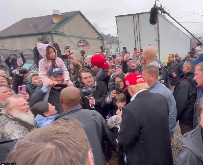 Además de criticar a Biden, como en campaña, repartió go-rras rojas con su lema “Make América Great?Again”.
