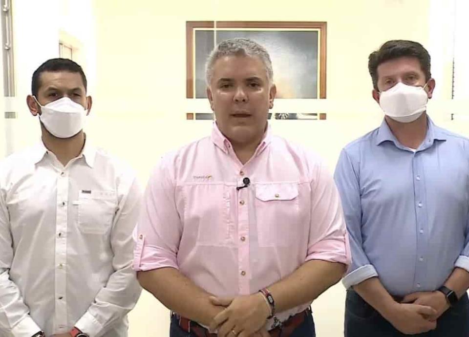 De acuerdo a lo informado por el propio mandatario, junto a la comitiva presidencial se encontraban el ministro del Interior, Daniel Palacios, y el ministro de Defensa, Diego Molano.