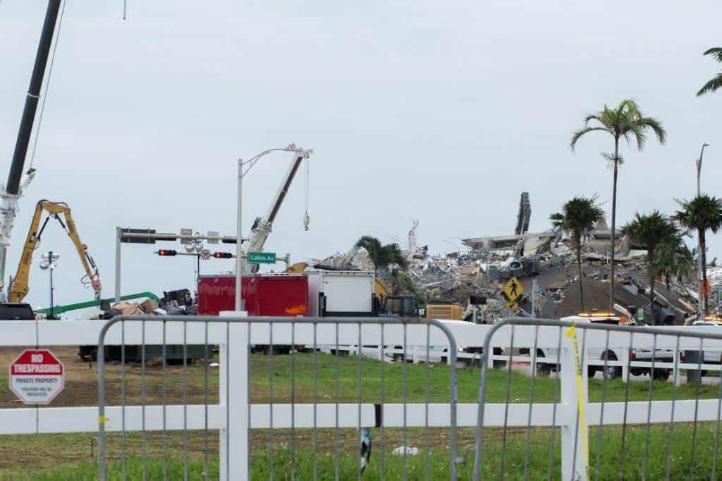 Excepto por las primeras horas posteriores al desplome, nunca surgieron sobrevivientes. Los equipos de búsqueda pasaron semanas enfrentándose a los riesgos de los escombros, lo que incluía una porción inestable del edificio que aún estaba en pie, un incendio recurrente y el agobiante calor veraniego y las tormentas de Florida. Examinaron más de 13.000 toneladas de concreto y varillas en ruinas, con frecuencia trabajando piedra por piedra, antes de declarar el fin de las labores.