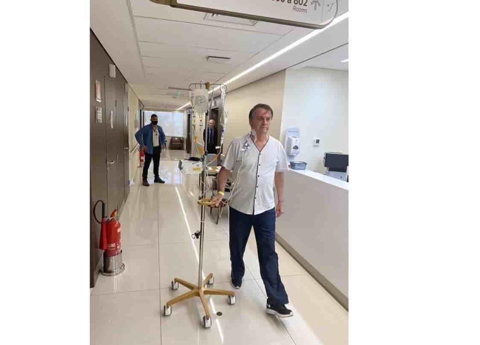 Sao Paulo.- El presidente de Brasil, Jair Bolsonaro, publicó una foto caminando por el hospital de Sao Paulo donde ingresó desde el miércoles a causa de una obstrucción intestinal.