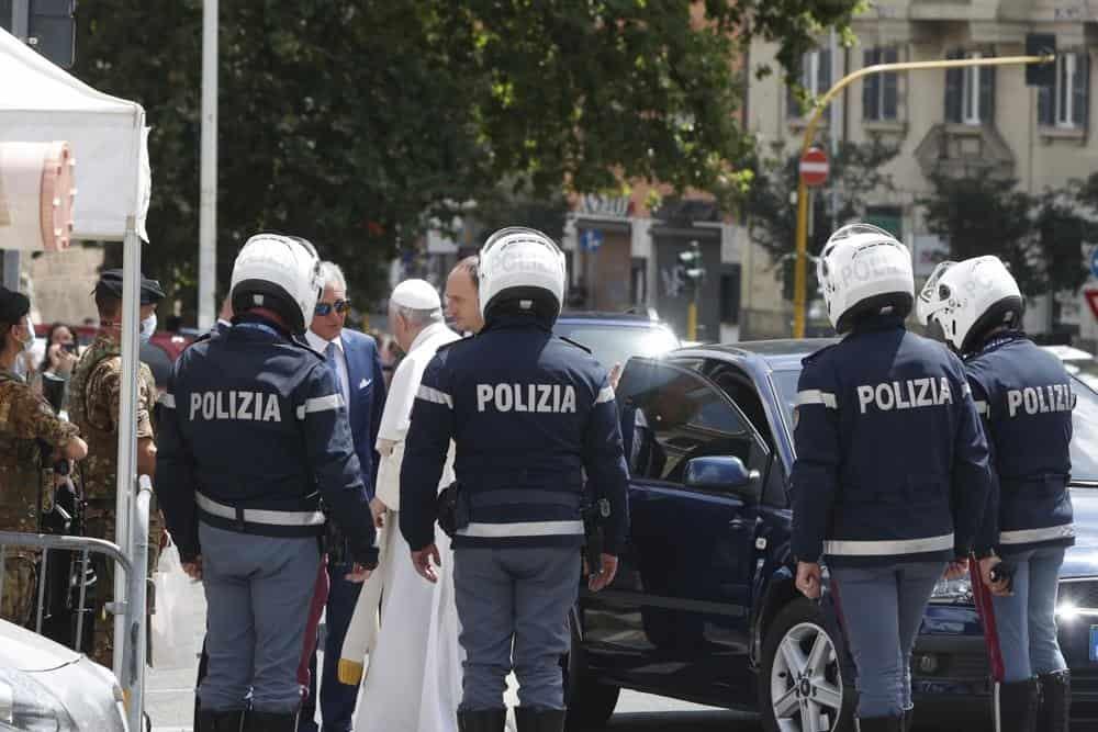 Cuando su pequeña caravana llegó a una entrada lateral del Vaticano, el Ford se detuvo y Francisco salió con ayuda de un guardaespaldas. Saludó a algunos agentes de seguridad italianos -dos soldados que montaban guardia y un puñado de escoltas de la policía italiana en motocicletas- antes de volver al auto, que entró en el Vaticano por la puerta de Perugino.
