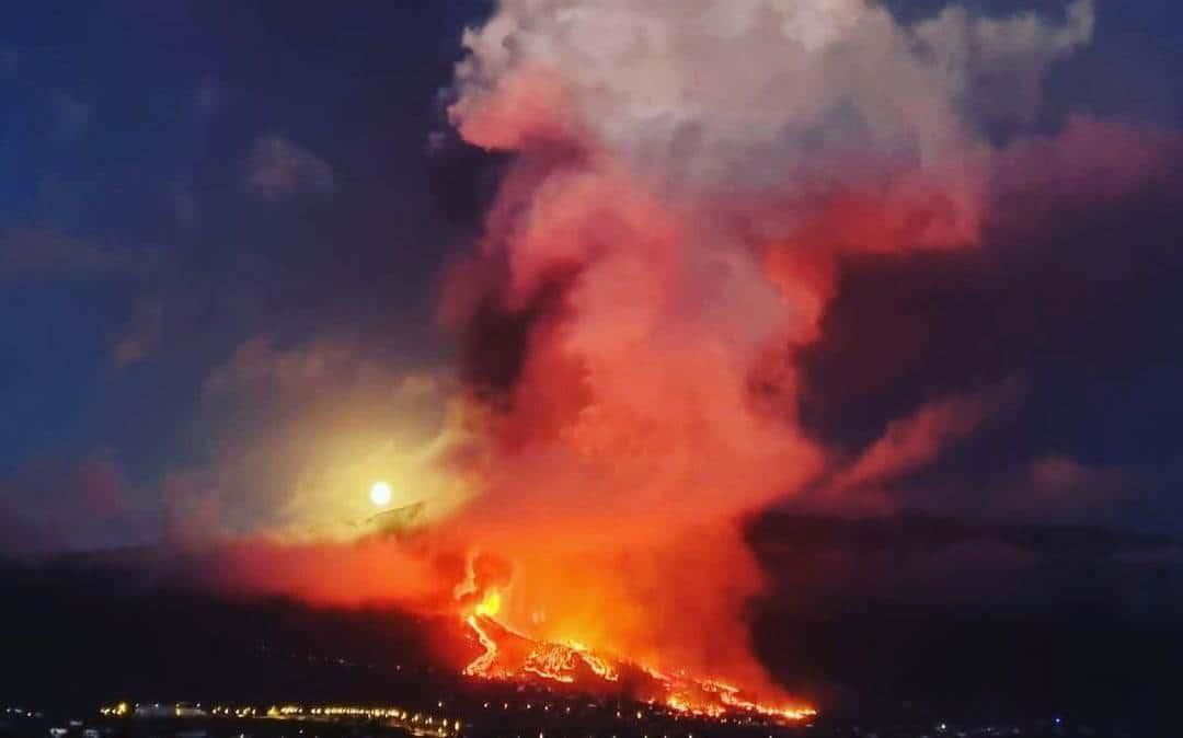 Madrid.- El volcán Cumbre Vieja entró en erupción la tarde de este domingo en La Palma, una de las islas Canarias de España.
