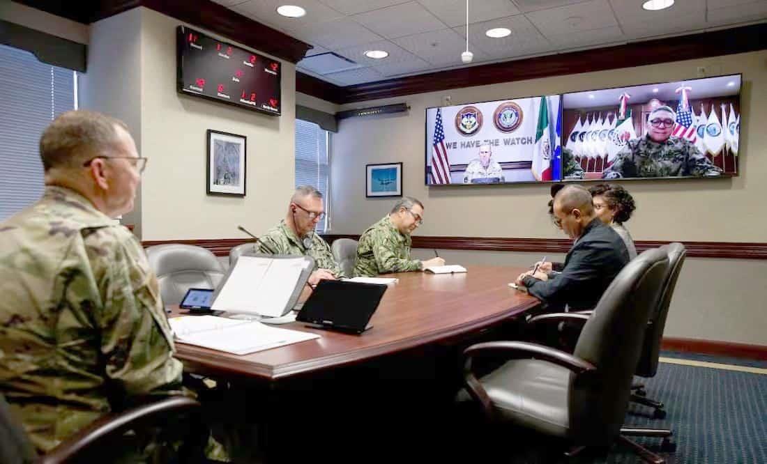 El jefe del Comando Norte de los Estados Unidos, Gregory M. Guillot, conversó por videoconferencia con los secretarios de la Defensa Nacional, el general Ricardo Trevilla Trejo, y de Marina, el almirante Raymundo Pedro Morales Ángeles, por separado.
