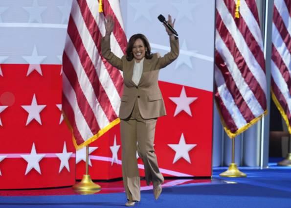 En un discurso breve pero cargado de efusividad, la vicepresidenta estadounidense prometió a los demócratas presentes derrotar a Donald Trump en las elecciones de noviembre.