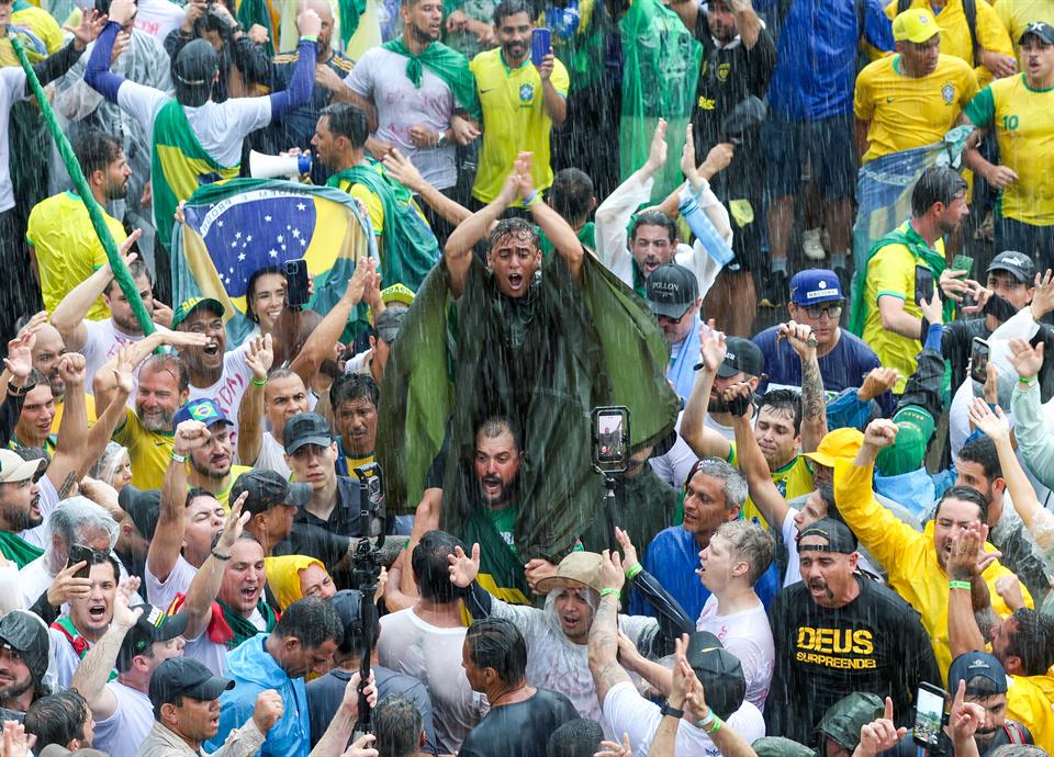 Miles de manifestantes se habían concentrado bajo una fuerte lluvia en los alrededores de una plaza en la capital brasileña, en la primera gran demostración de fuerza de apoyo a Bolsonaro desde que fue trasladado a un penal cercano diez días antes para cumplir una condena de prisión por intento de golpe de Estado.