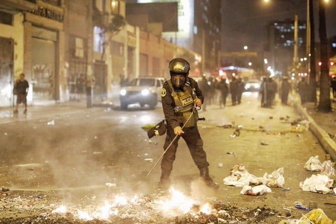 Lima, Perú.- Daños superiores a los 200 mil dólares, 75 postes dañados, 10 árboles destruidos y más de una docena de viviendas dañadas, además de cientos de bardas pintadas con consignas, son en parte el saldo de los disturbios por la ola de protestas en Lima, capital de Perú.
