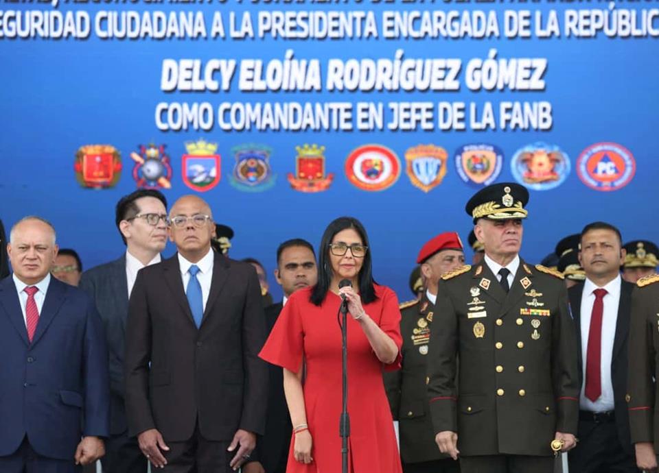 Militares y policías de Venezuela juraron lealtad y subordinación absoluta a Delcy Rodríguez