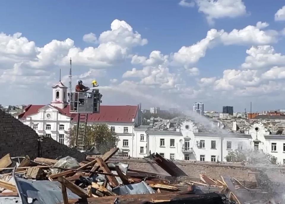 Zelenskyy condenó el ataque, que según dijo alcanzó edificios incluyendo un teatro y una universidad.