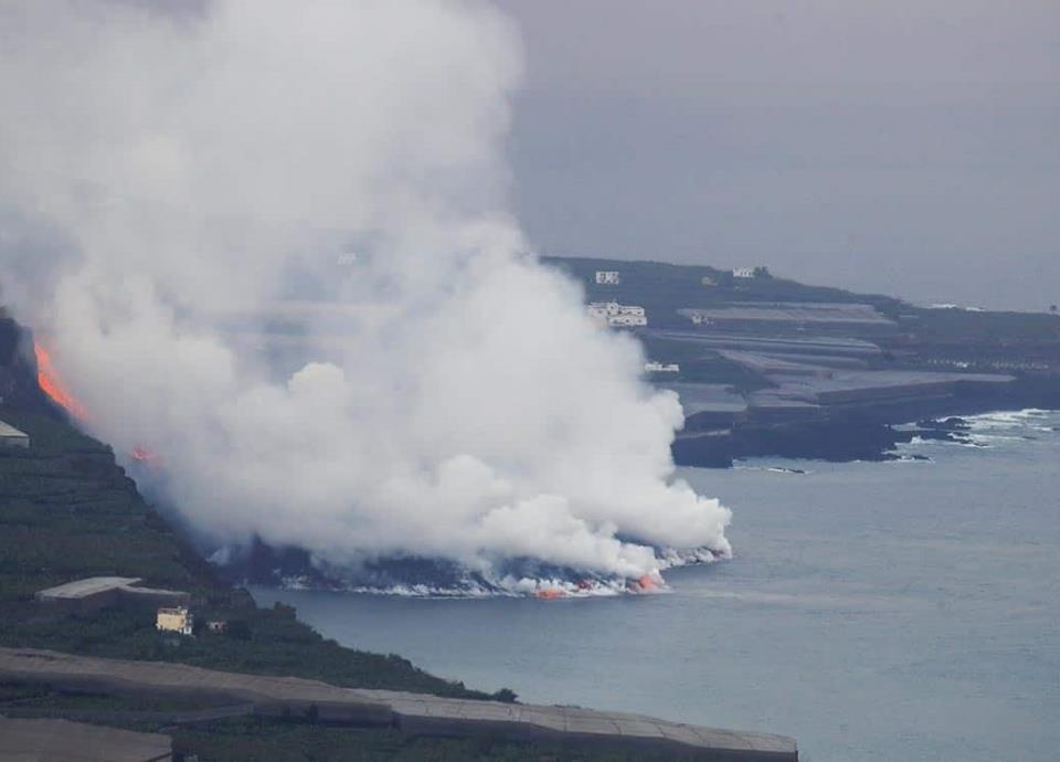 Las columnas de vapor, que según los expertos podrían contener gases tóxicos, comenzaron cuando el río de roca fundida de color rojo brillante entró en contacto con el océano Atlántico a las 23:00 horas del martes.