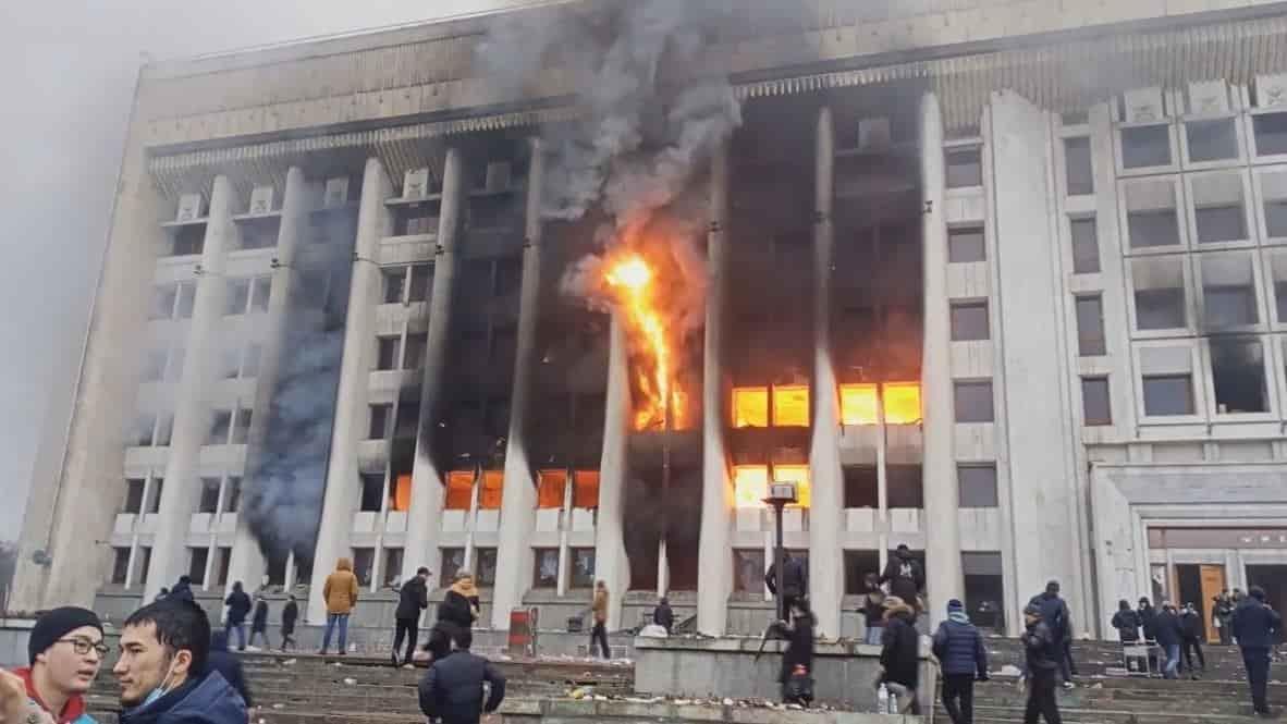 A lo largo de la jornada, un grupo de manifestantes ha asaltado la sede central del canal de televisión Mir24 en la ciudad de Almaty, donde han provocado varios destrozos, según el propio medio de comunicación, que también ha informado del incendio en el edificio de la cadena estatal Qazaqstan.