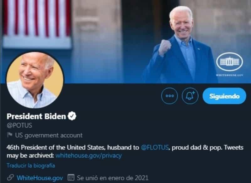 El tuit salió desde la cuenta oficial de POTUS, que es el acrónimo oficial en inglés de presidente de Estados Unidos. La cuenta recién cambio de nombre y de foto de perfil, después de cuatro años de "pertenecer" al expresidente Donald Trump. Biden prestó juramento minutos antes del mediodía durante una ceremonia en el Capitolio.