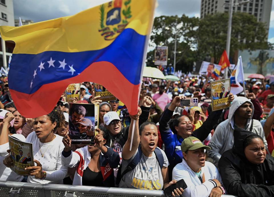 En el centro de Caracas, miles de seguidores de Maduro marcharon por su liberación, en una nueva movilización de las que se producen casi a diario desde la captura del derrocado mandatario.