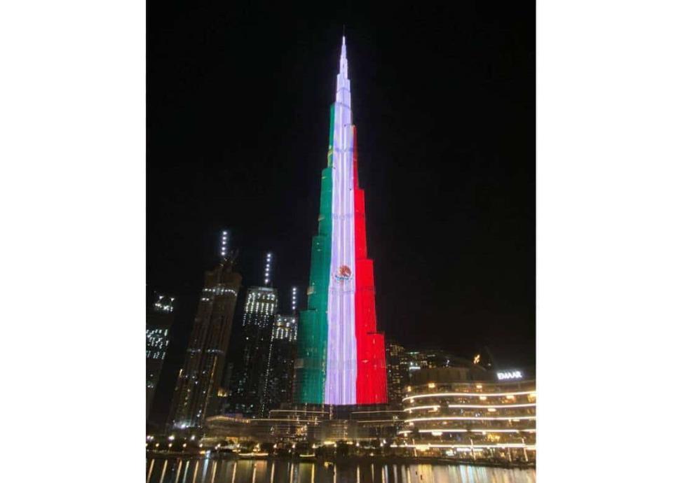 se vistió de los colores patrios y para celebrar la Independencia de México iluminó con la Bandera nacional el rascacielos Burj Khalifa, ubicado en Dubái.