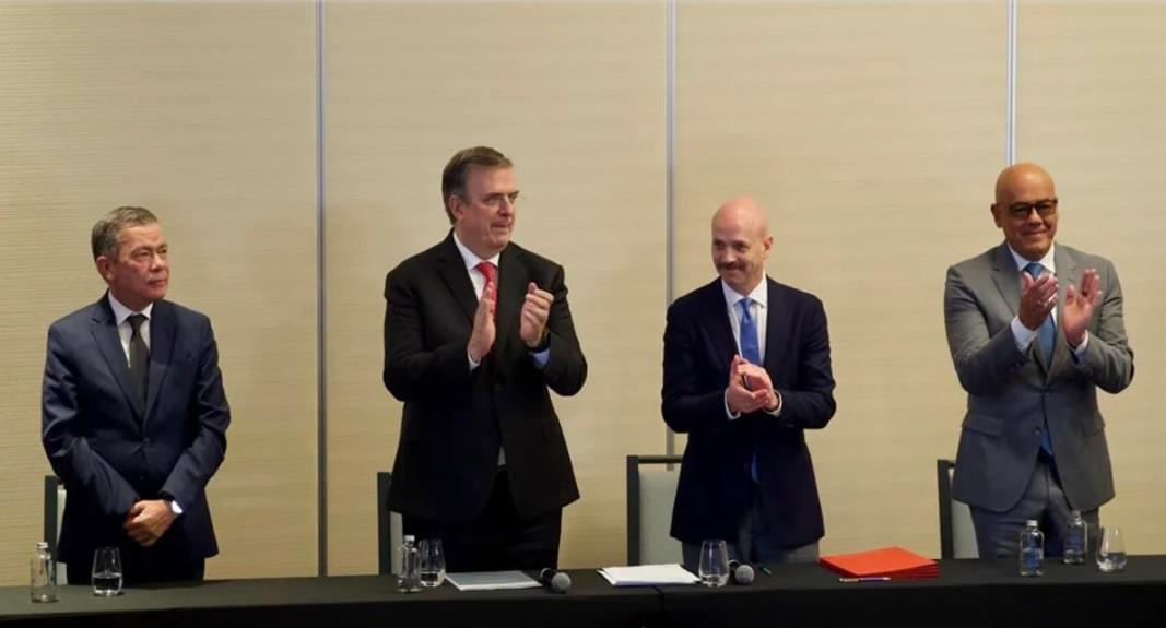El canciller mexicano Marcelo Ebrard dio la bienvenida a ambas delegaciones y les deseó que el diálogo permita alcanzar acuerdos en favor del pueblo de Venezuela.